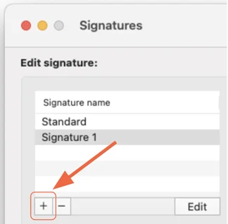 Click the “+” button to add a new signature. By default, it will be named something like “Signature 1.” You can rename it by clicking on the name.