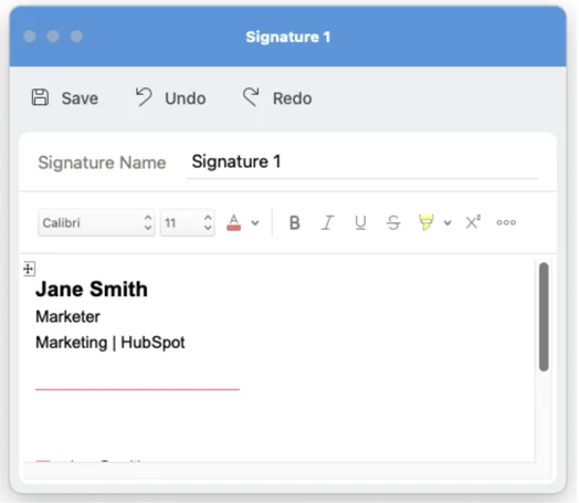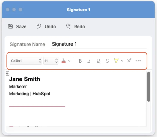 You can manually type your information, or copy and paste content from another source—such as HubSpot’s Email Signature Generator.