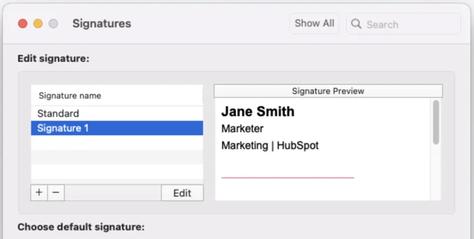 After assigning your default signature preferences, click the red “X” in the top-left corner of the window to close the Signature settings.