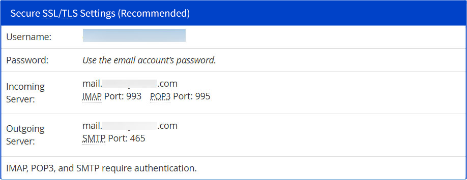 - Enter the IMAP and SMTP server settings you obtained from cPanel, including the correct ports and security settings.